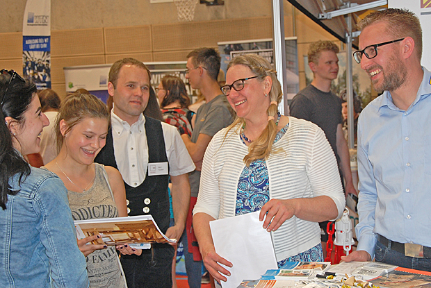 Über 90 Aussteller Schüler und Eltern beim Berufsinfotag in Rothenburg ob der Tauber im April 2018 erneut über Ausbildungsmöglichkeiten, Praktika, Duales Studium und regionale Studiengänge informiert. Mit von der Partie waren natürlich auch die Vertreter der Fachgruppe Zimmerer in der Bauinnung Rothenburg-Uffenheim.